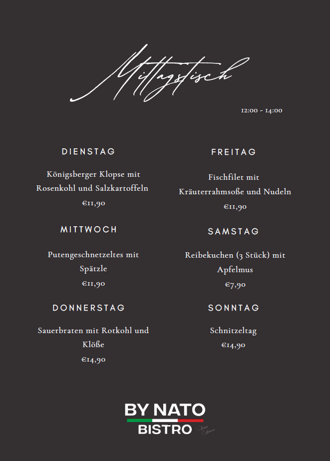 Unsere Wochenkarte - Dienstags - Sonntags von 12 Uhr - 14 Uhr